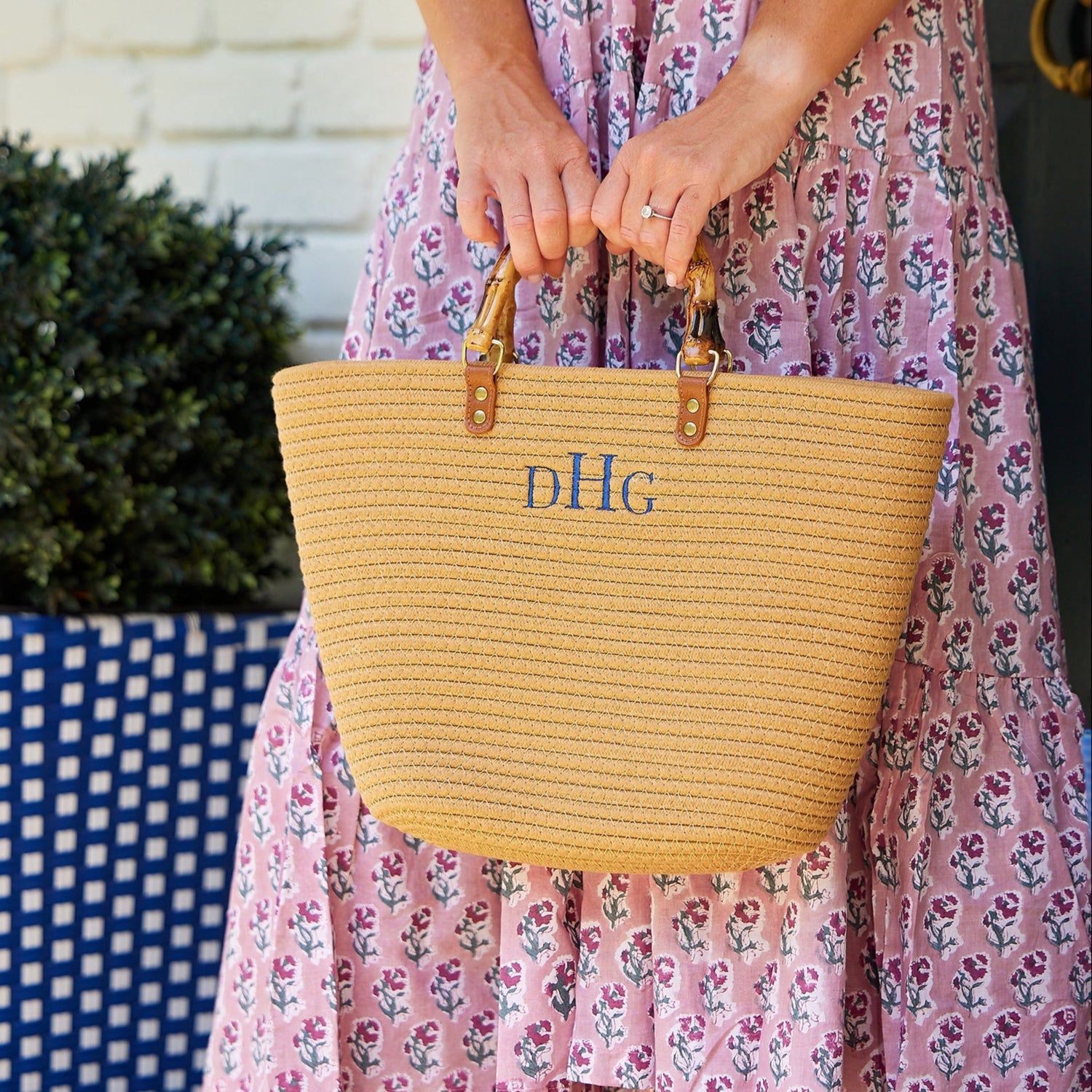 The Bamboo Market Tote is your effortlessly chic companion for everything from morning errands to beachside trips. Made from structured woven material with luxe bamboo-style handles, this bag blends natural textiles with classic style.