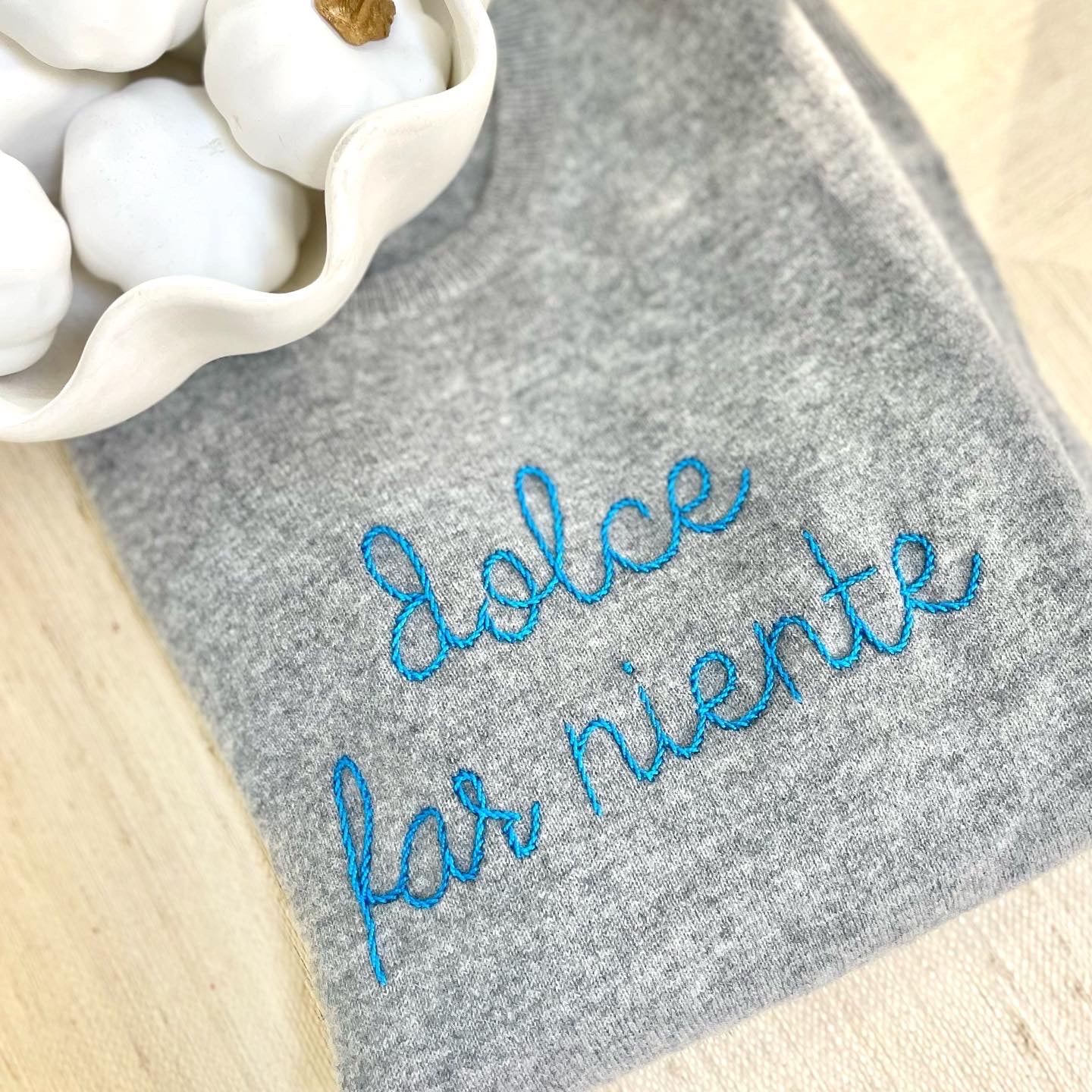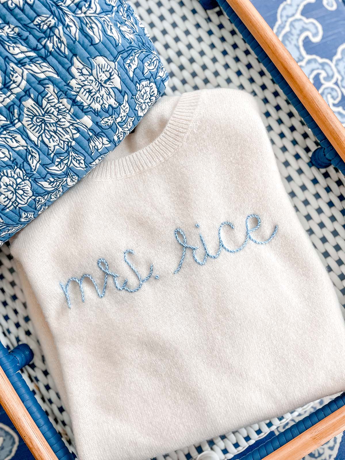 Made from the finest cashmere, each piece is hand embroidered for a truly personalized touch.
