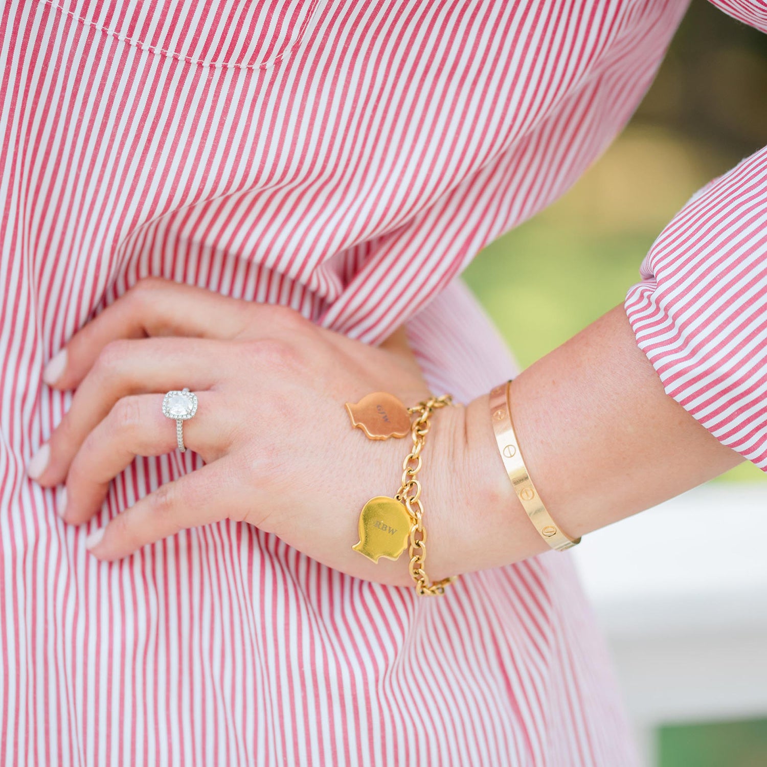 This one-of-a-kind piece features boy and girl silhouette charms, making it the perfect accessory for any proud parent or grandparent. Add children's initials to each charm for a meaningful addition to any jewelry collection.
