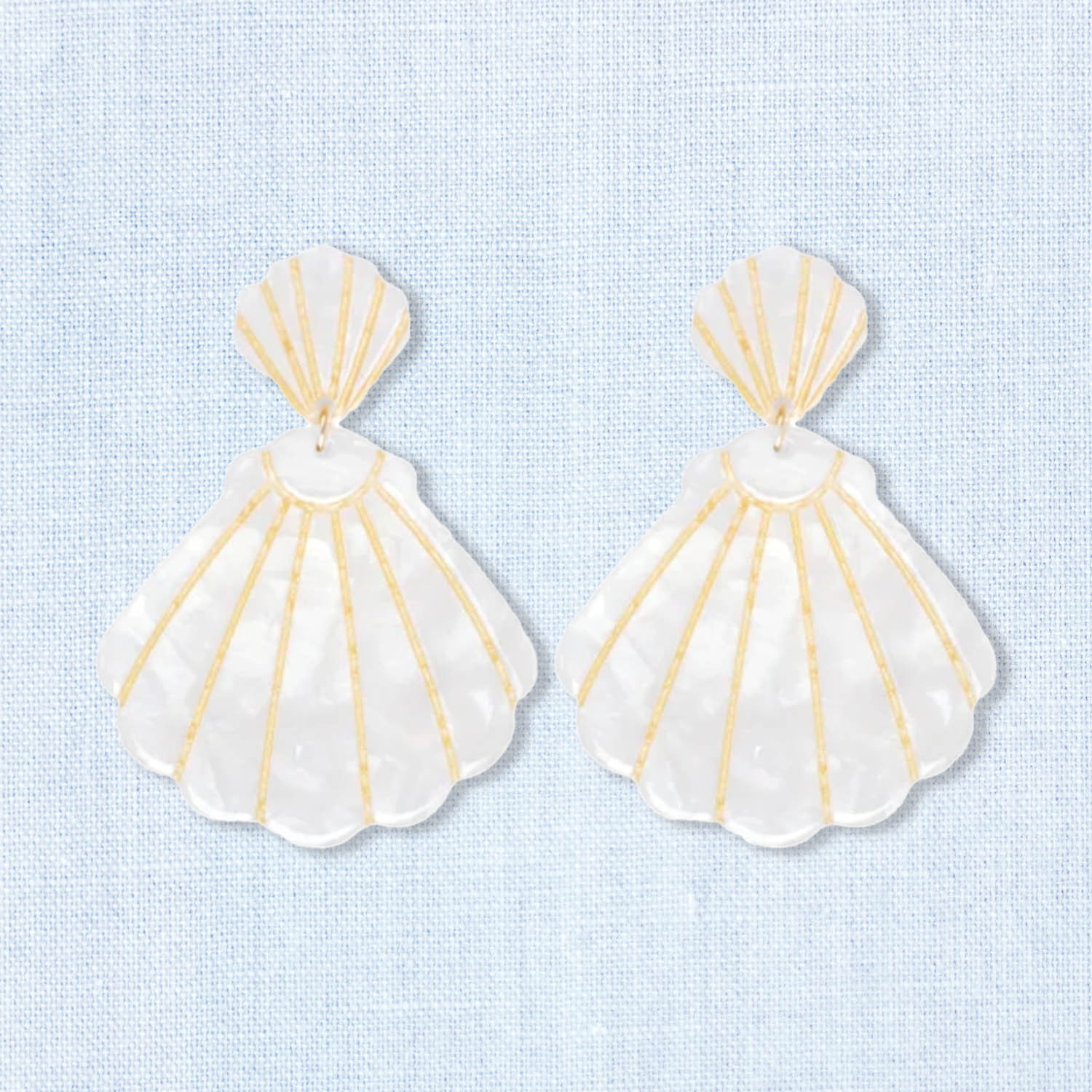 These pearlescent white and gold are a versatile addition to your accessories arsenal, all year long. Beautiful at the beach, or with cool-weather sweaters!